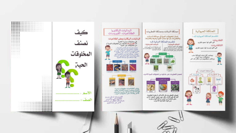 قالب المطوية المدرسية عن تصنيف المخلوقات الحية