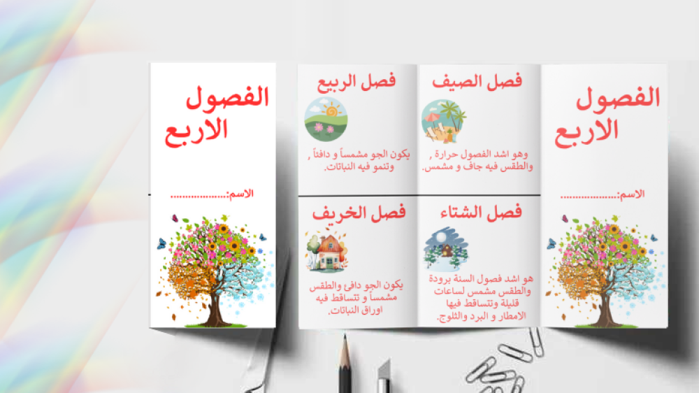 قالب المطوية المدرسية عن الفصول الأربع