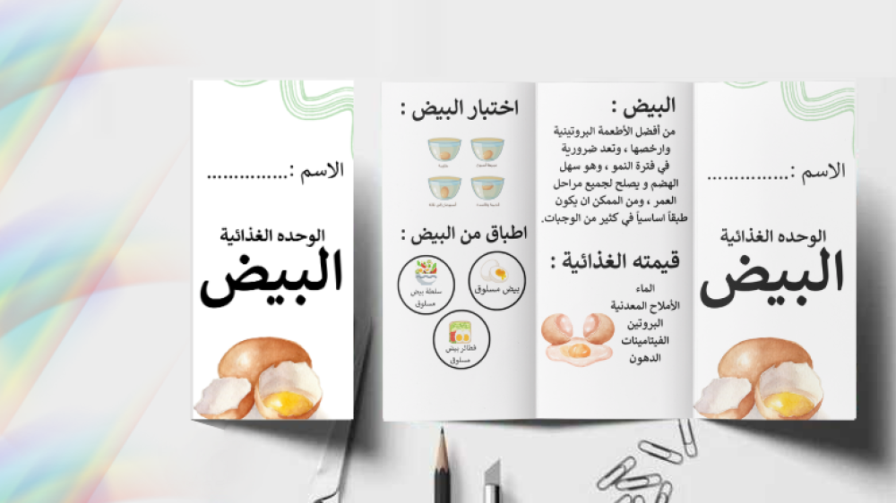 قالب المطوية المدرسية عن الوحدة الغذائية البيض