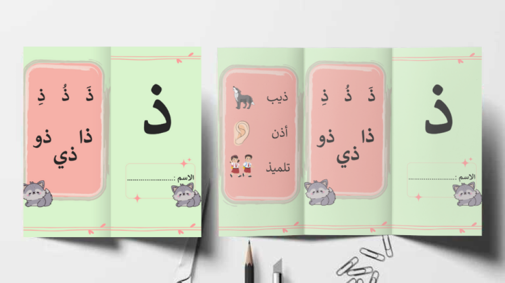قالب المطوية المدرسية عن مطوية حرف ذ