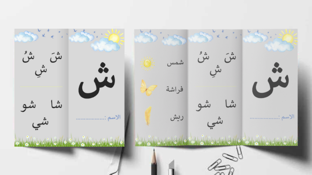 قالب المطوية المدرسية عن مطوية حرف ش