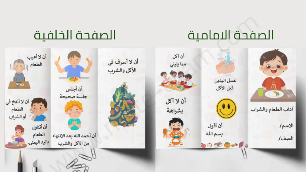 قالب المطوية المدرسية عن آداب الطعام والشراب