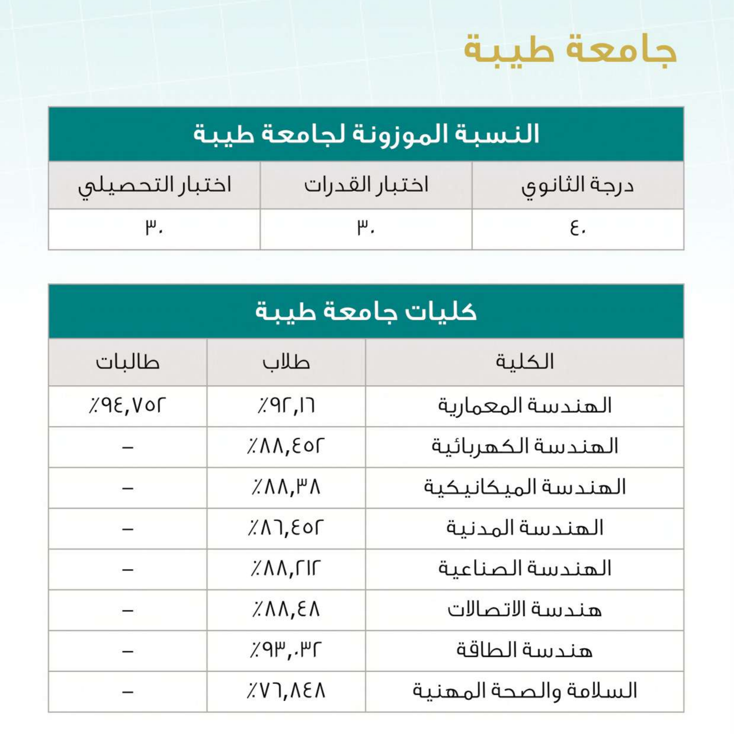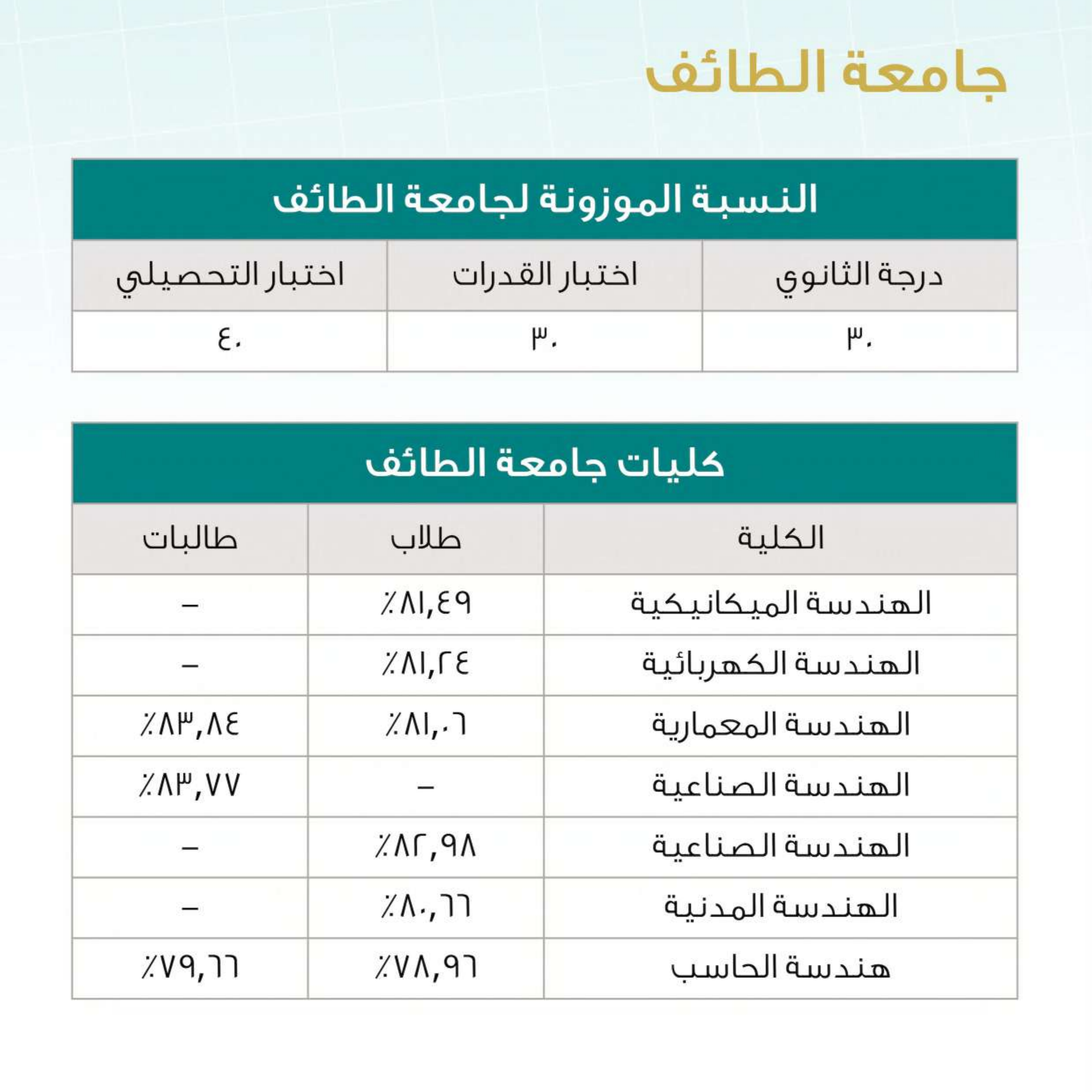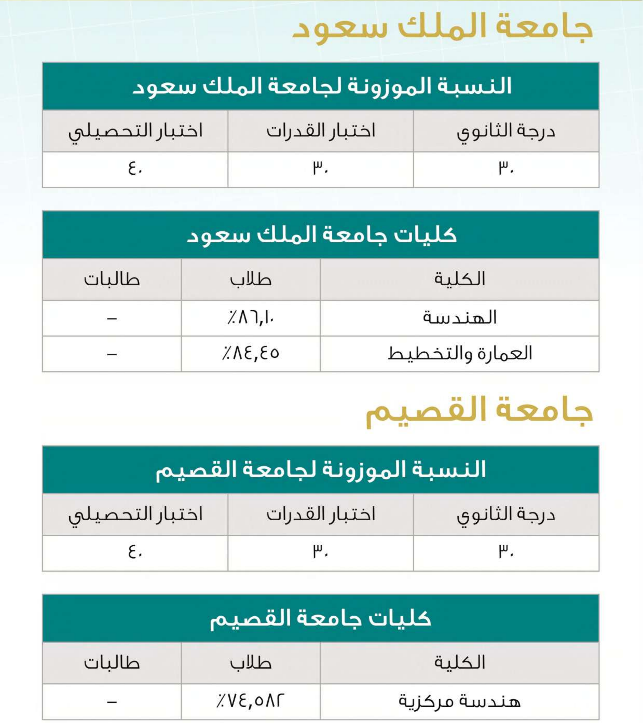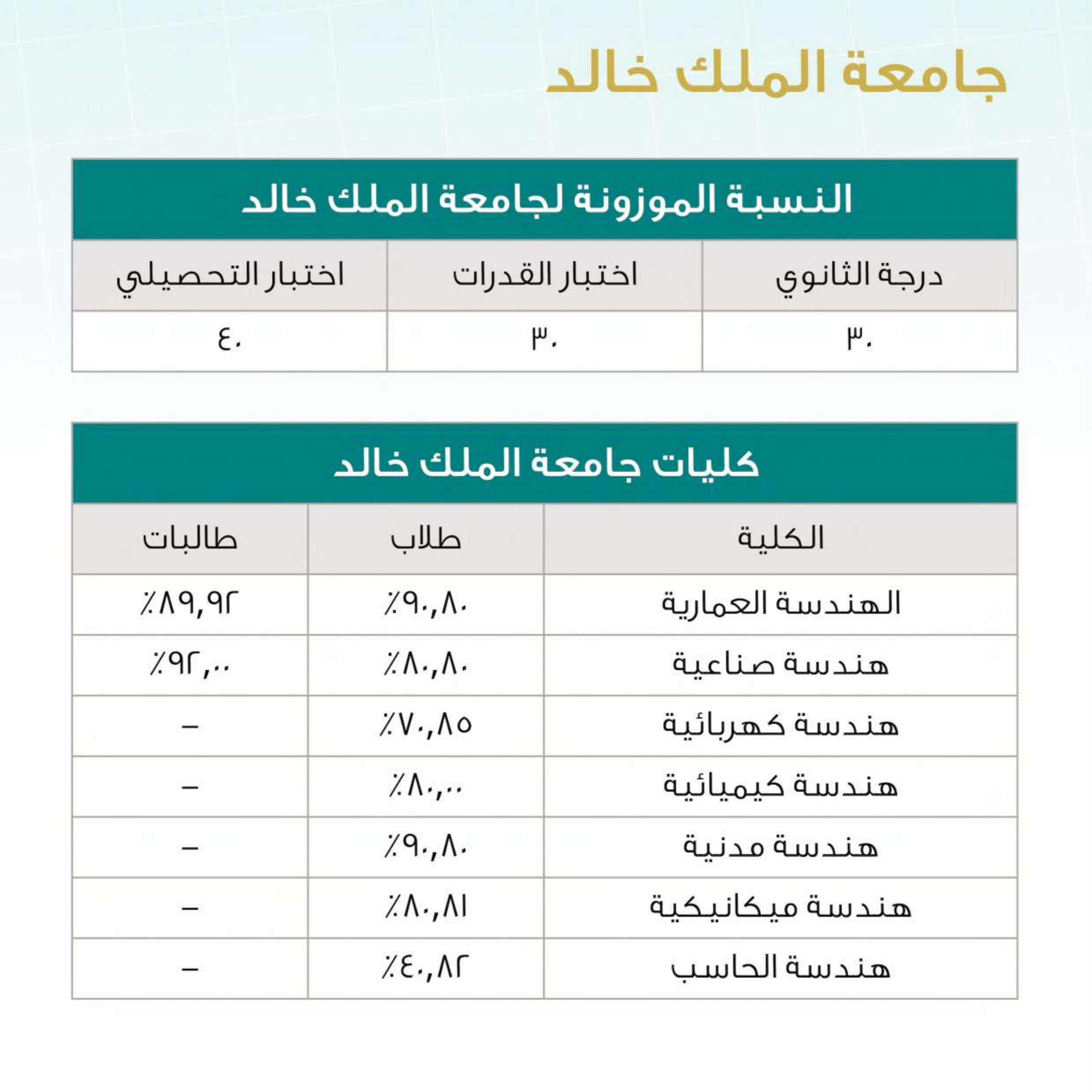 نسب القبول في التخصصات الهندسية بالجامعات السعودية لعام 2025