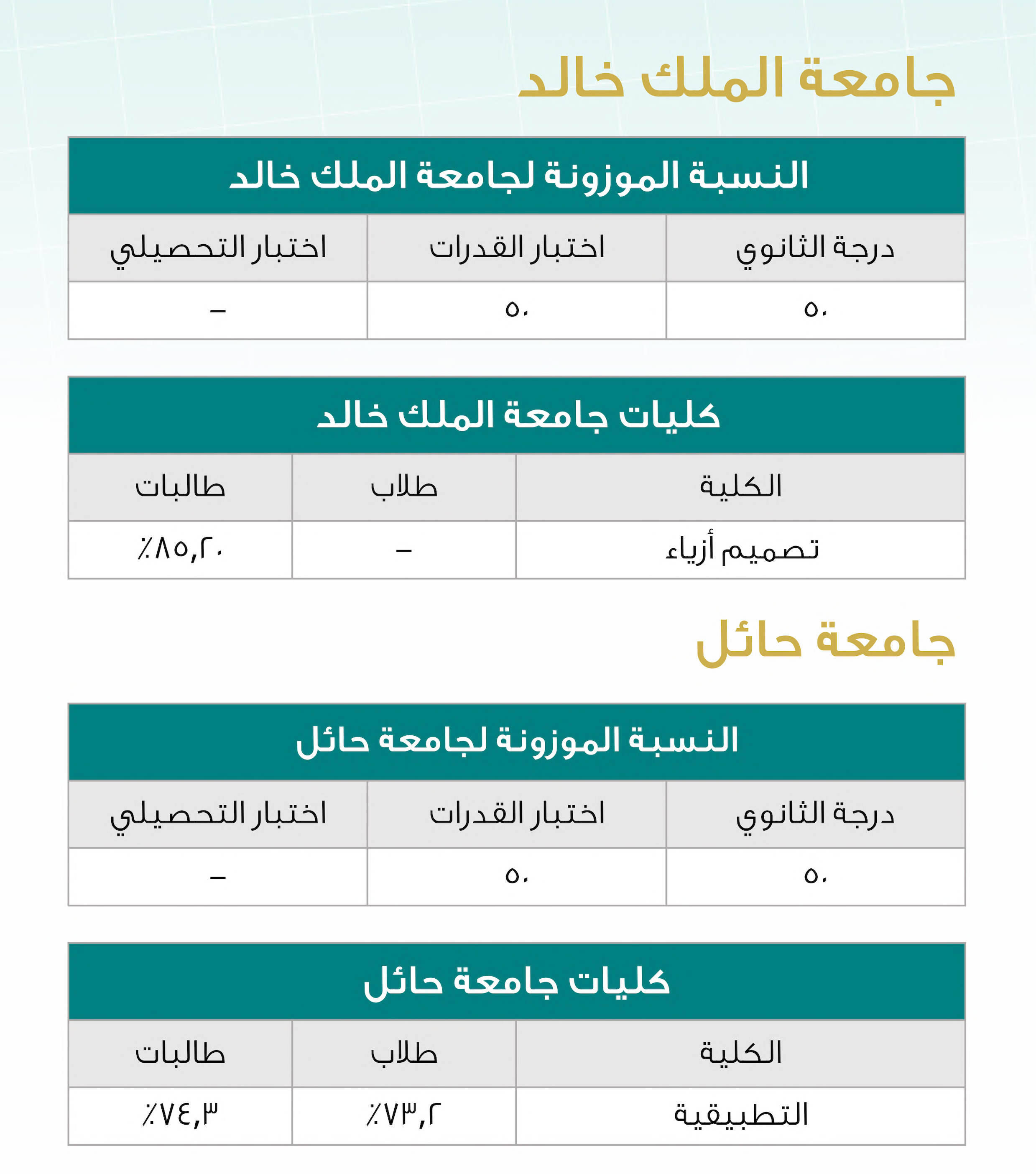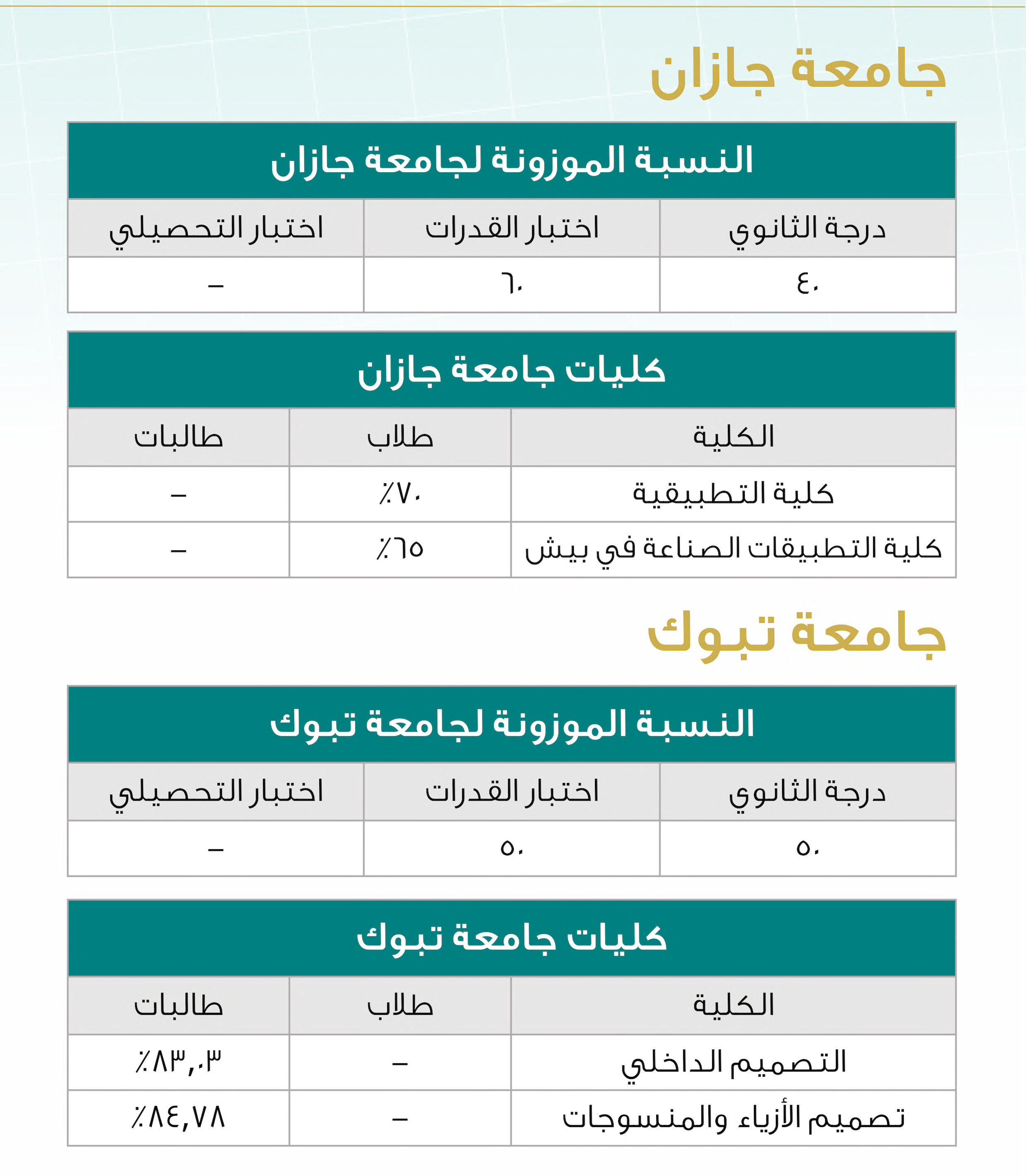 نسب القبول في تخصصات التصميم والفنون بالجامعات السعودية لعام 2025