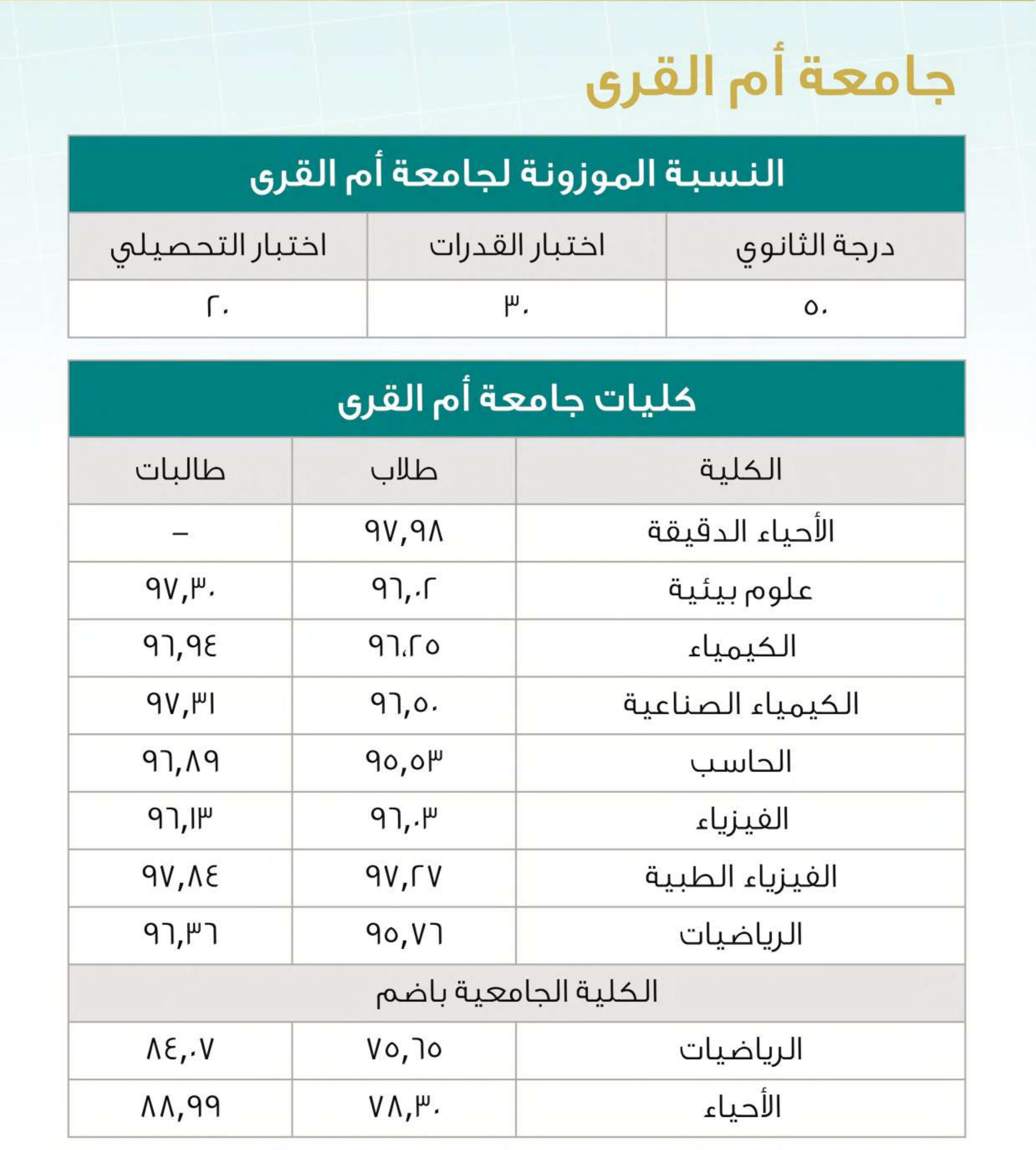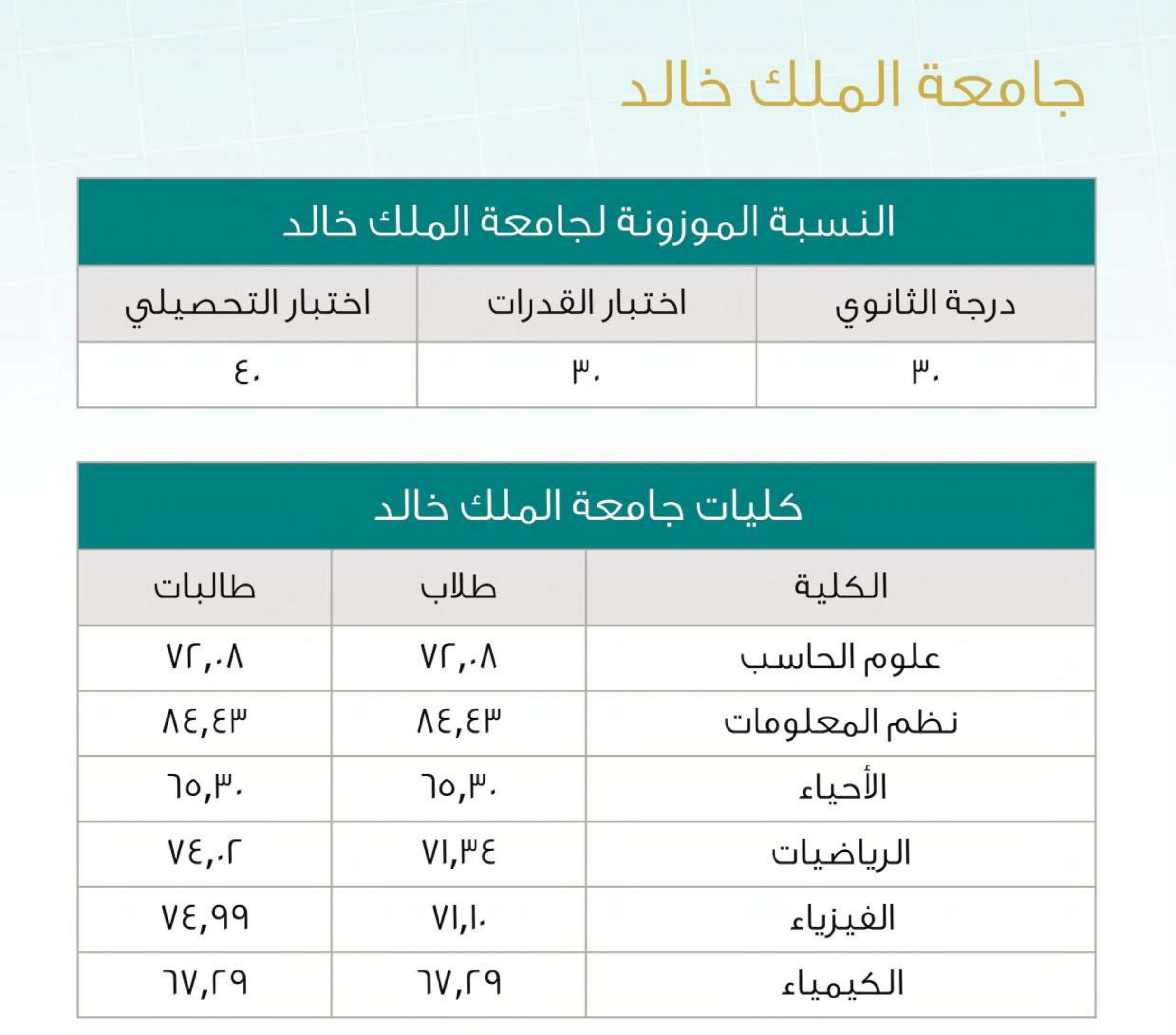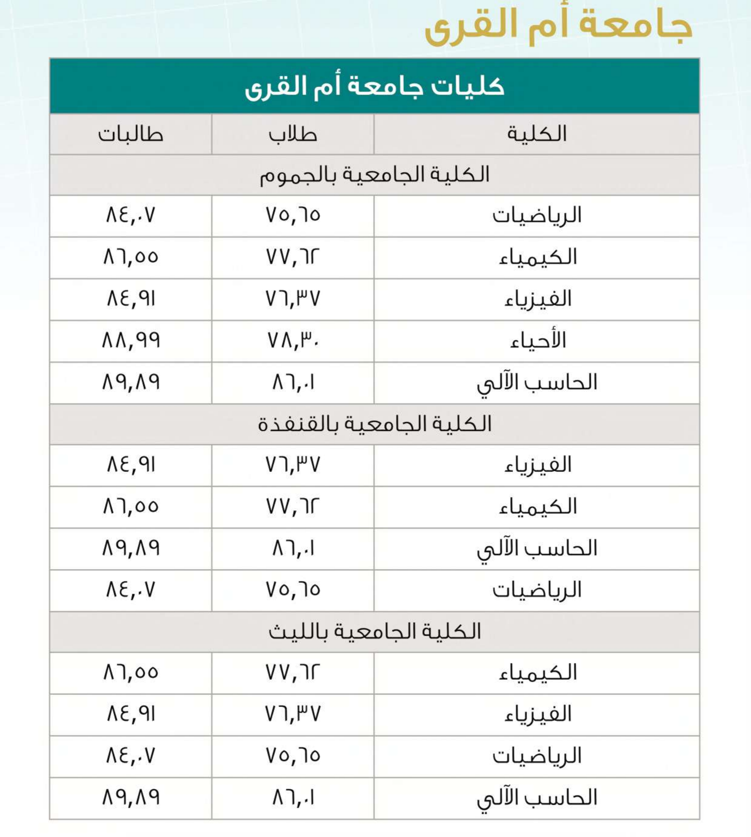 نسب القبول في تخصصات العلوم بالجامعات السعودية لعام 2025