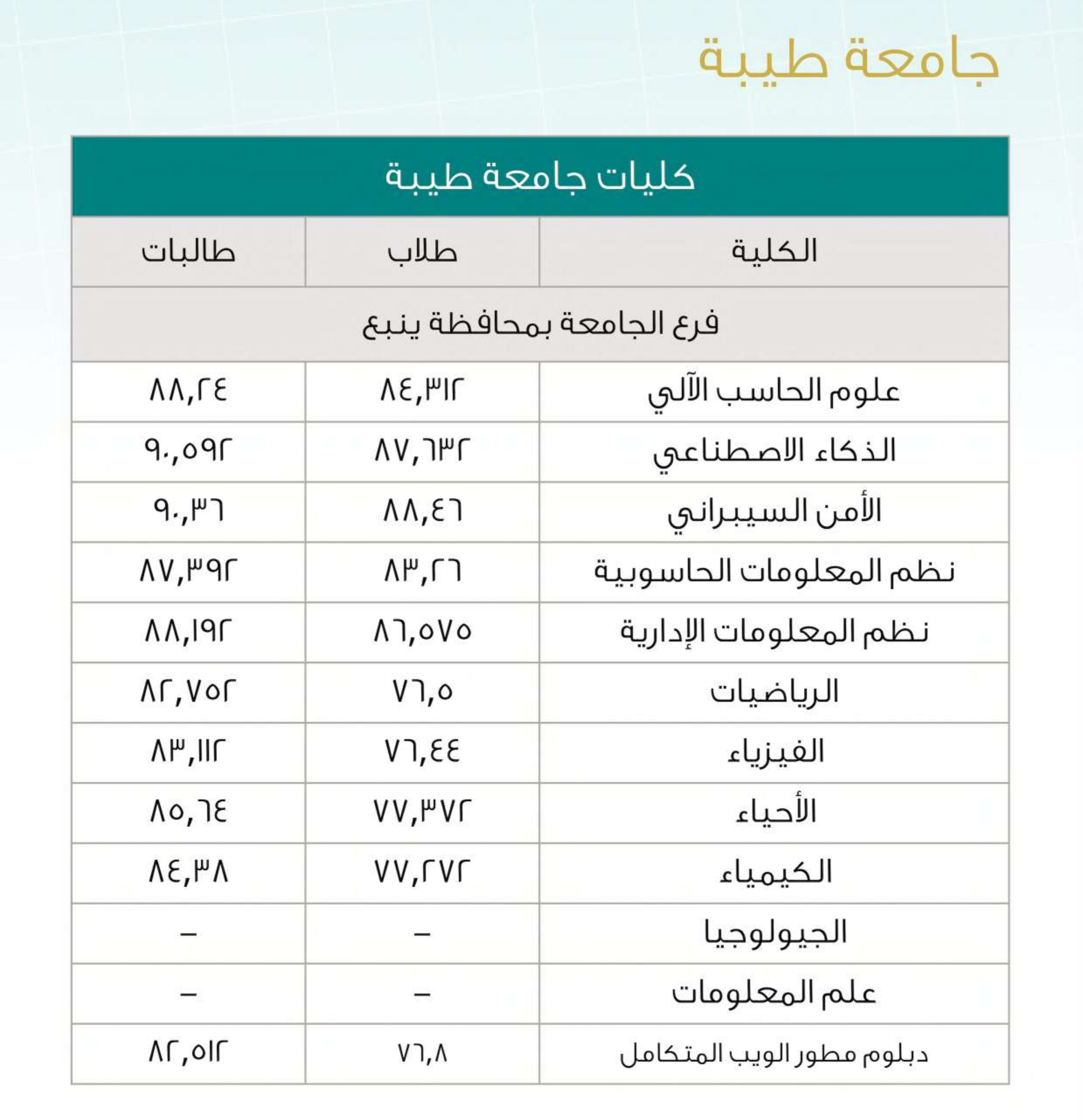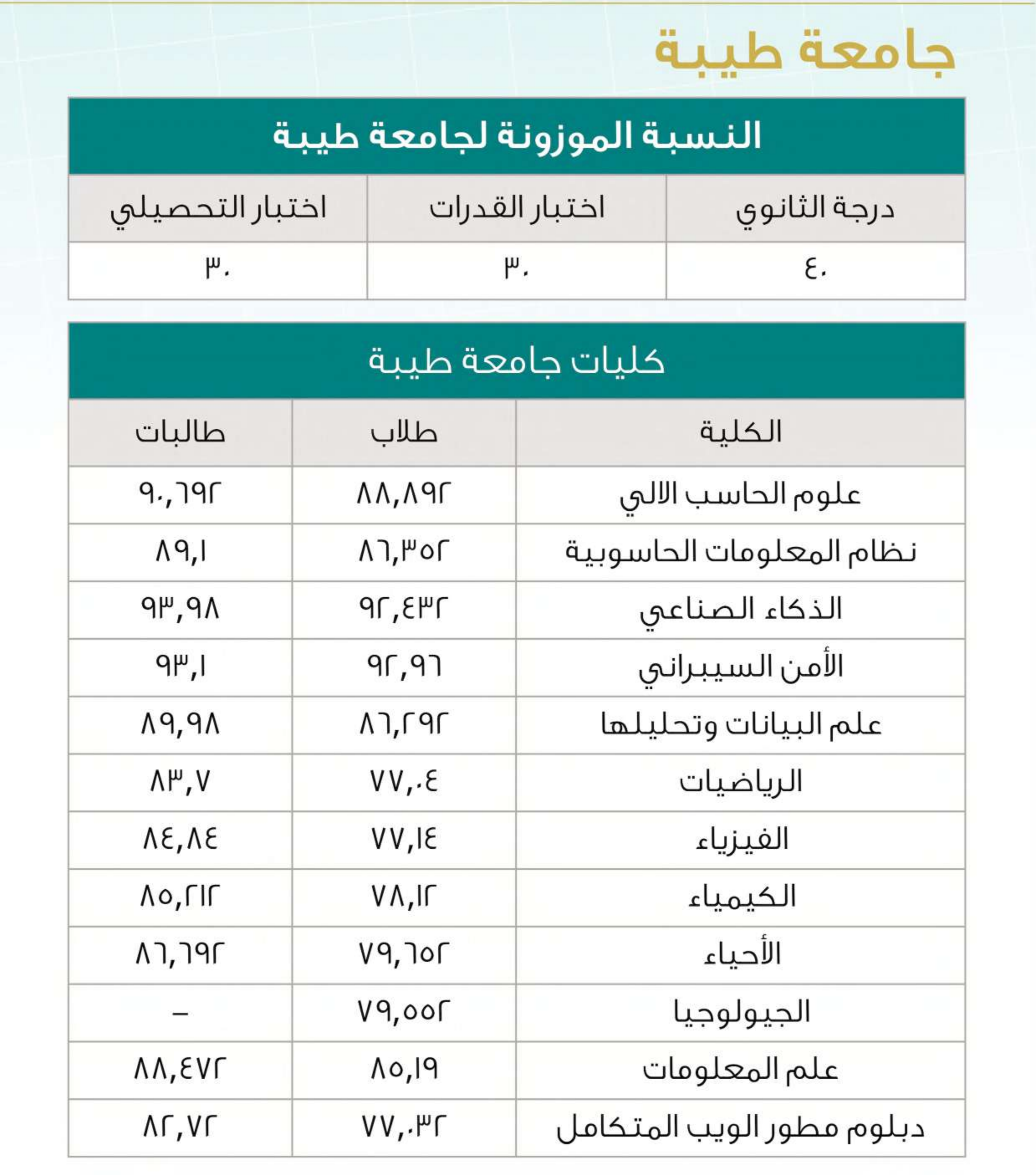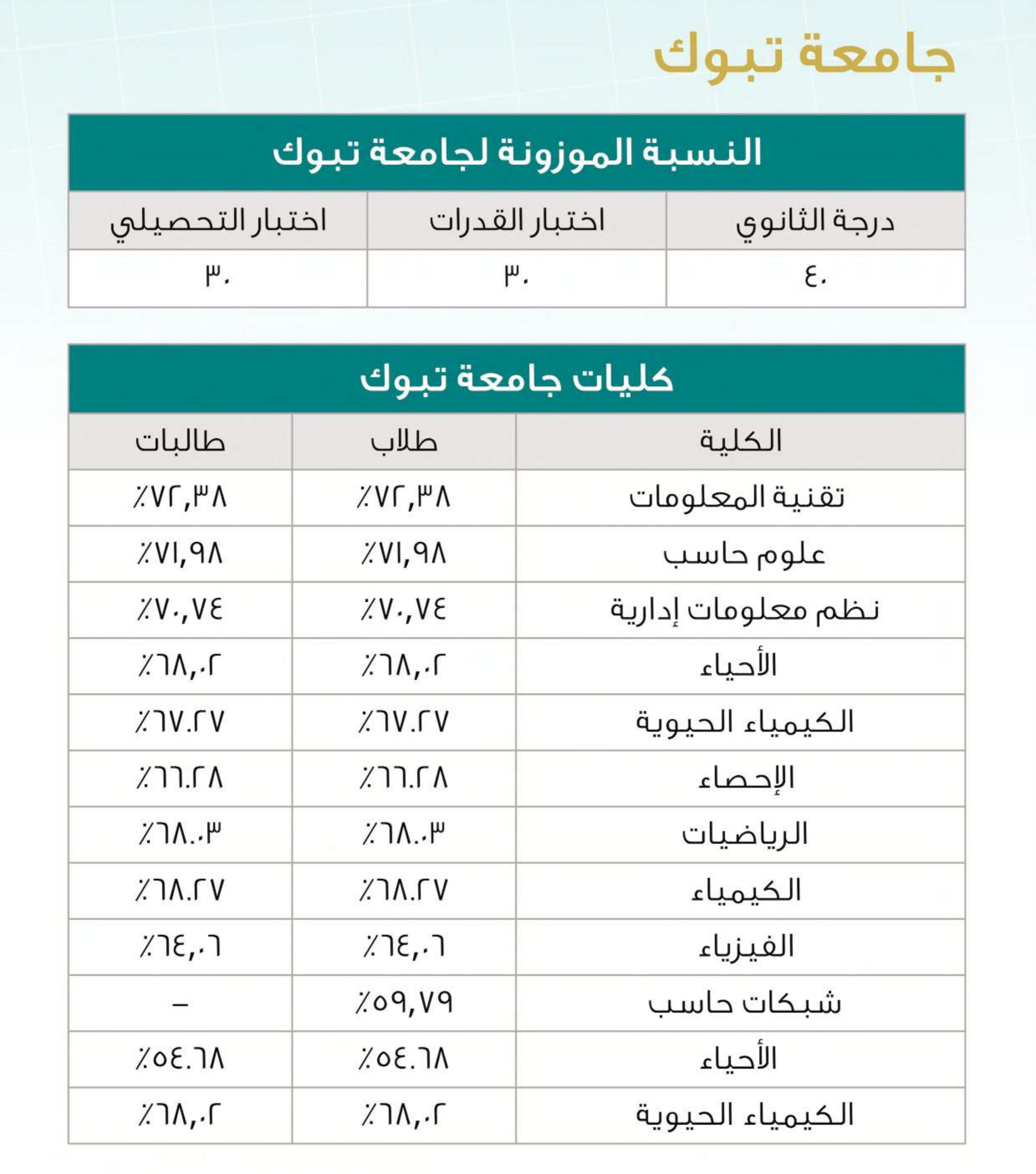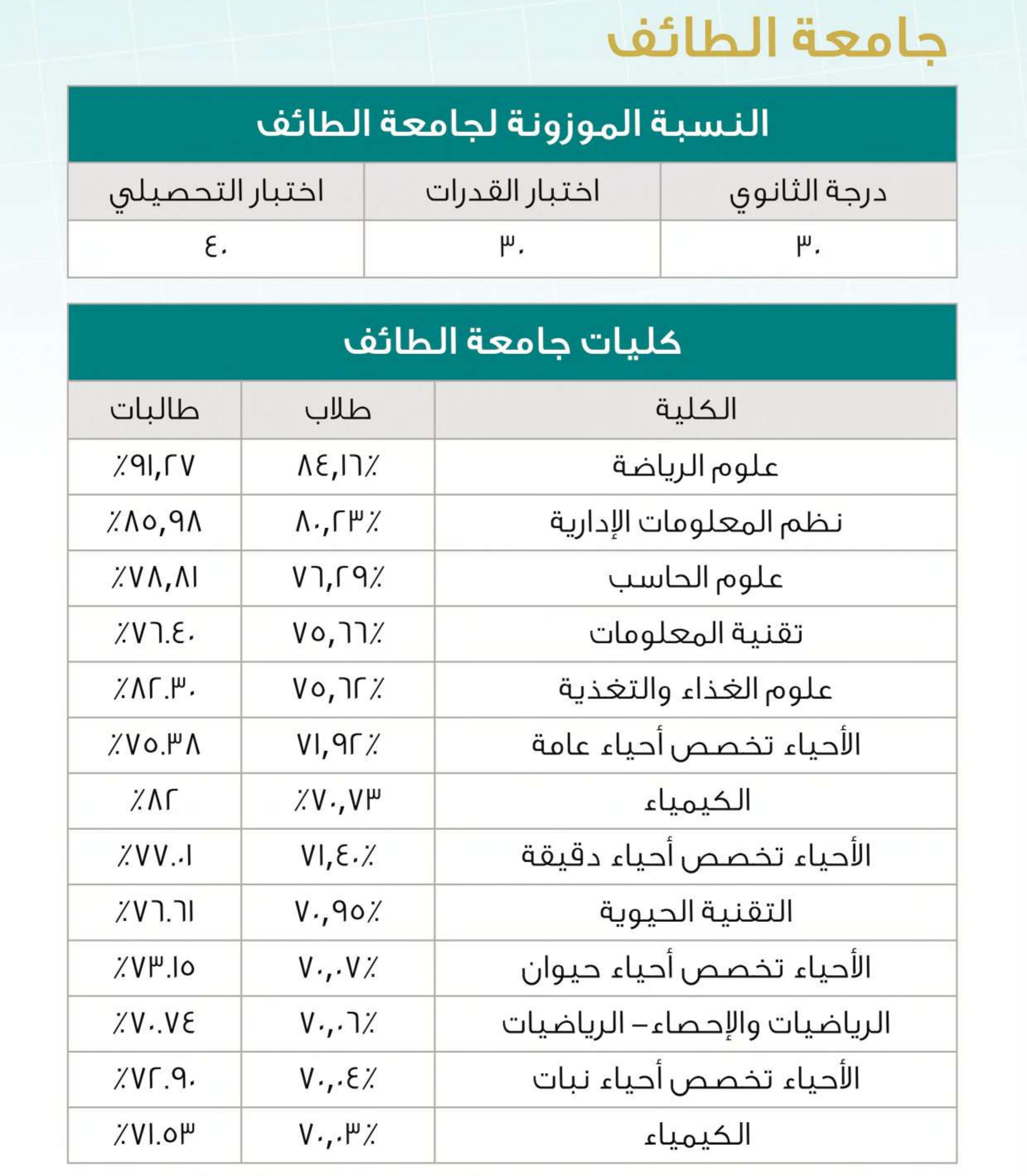 نسب القبول في تخصصات العلوم بالجامعات السعودية لعام 2025
