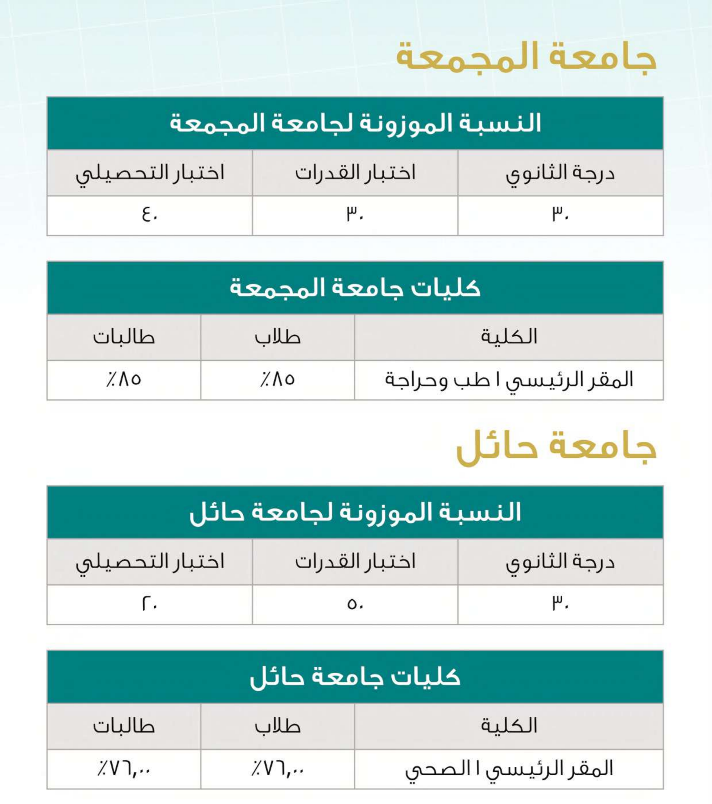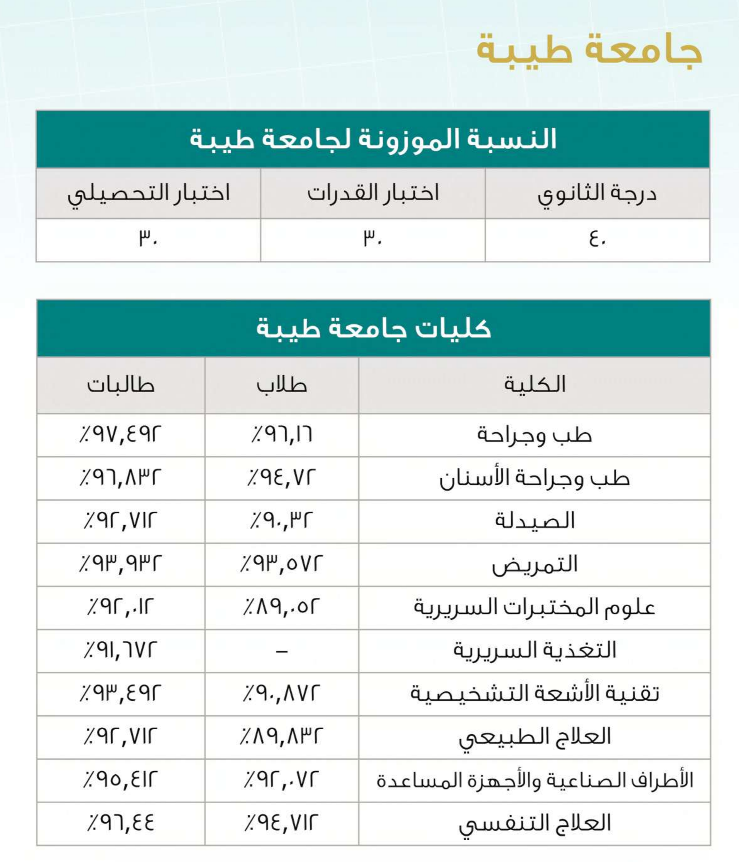 اكتشف أحدث نسب القبول في الكليات الصحية بالجامعات السعودية لعام 2025، وتعرّف على تفاصيل النسبة الموزونة وآلية المفاضلة بين الطلاب والطالبات حسب التخصص.